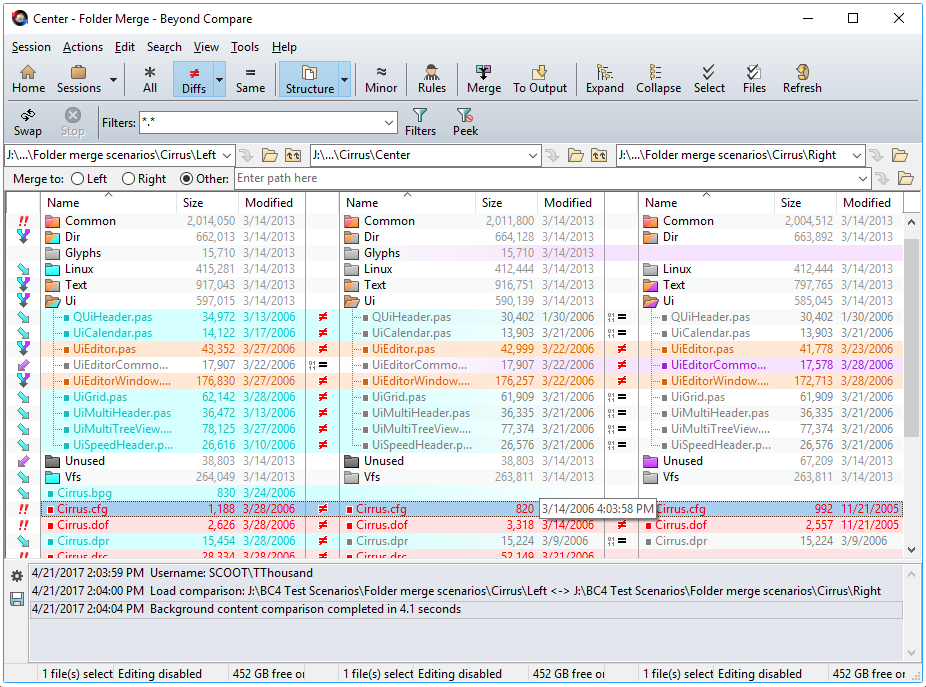 Beyond Compare verson 4 プロ版では、3ウェイ・マージがファイルだけでなくフォルダもサポートするようになりました。