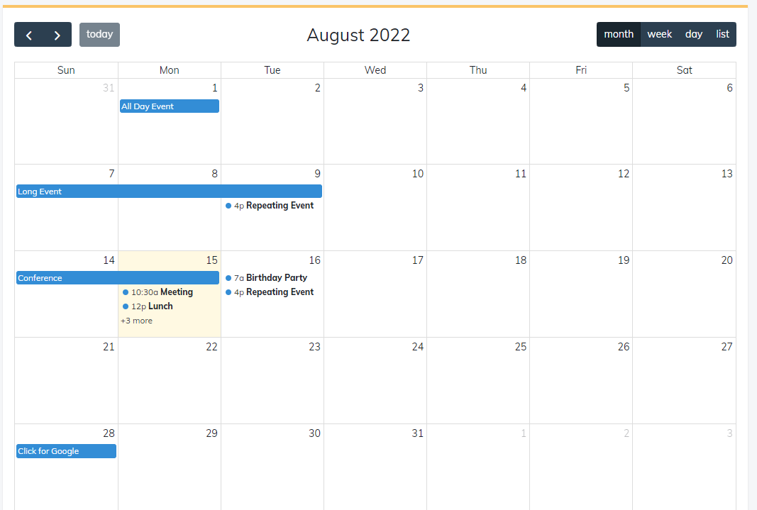FullCalendarは、人気の高いフルサイズのJavaScriptカレンダーです。