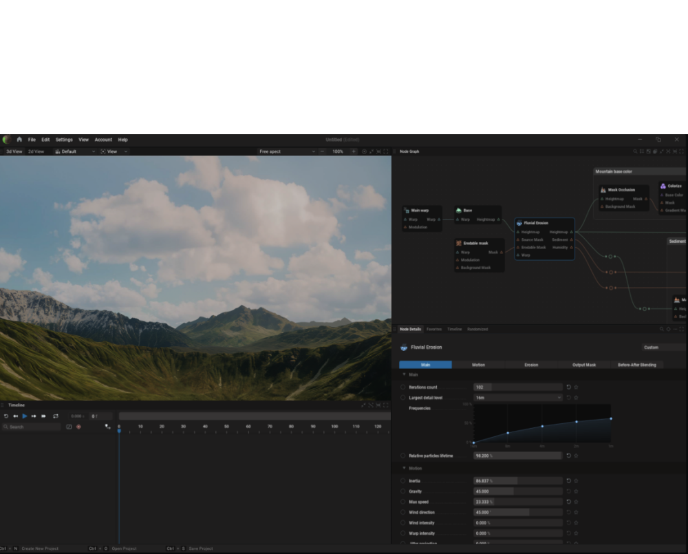 地形生成、ハイトマップ、マスク、メッシュ出力、惑星表現などを必要とするプロジェクトに向いています。ゲーム向けで、ノードベースかつ非破壊的な地形ワークフローを重視する環境に適しています。
