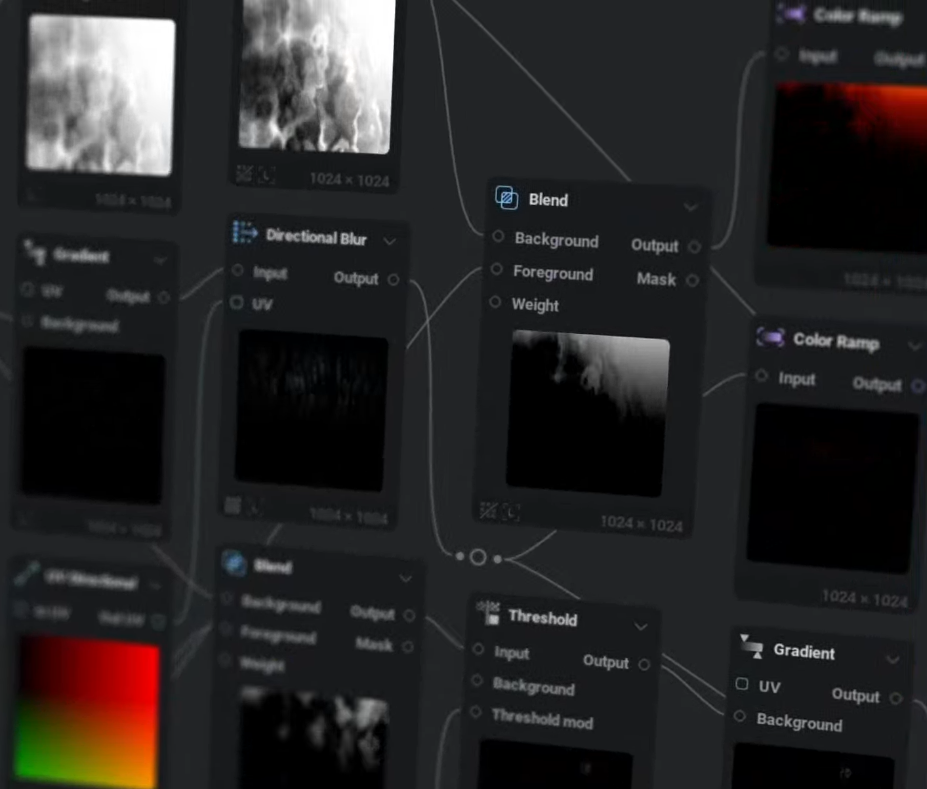IlluGen は、リアルタイム VFX とテクニカルアート向けの支援アセット制作に適しています。タイルノイズ、フローマップ、メッシュ、マスク、アトラス、VAT、UV ディストーションなどを一つのプロシージャル環境で扱いやすい点が特徴です。