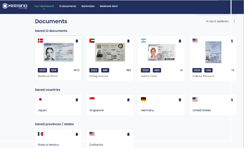 DocumentCheckerは、Keesingの手動審査・参照型ソリューションです。ブラウザから利用できるクラウド型SaaSとして、ID文書や紙幣の確認に必要な参照情報を提供します。