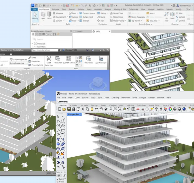 Speckleは、設計・解析・調整などの現場で使われる複数アプリケーションをつなぐために利用されます。代表例として、次のようなツール群での連携が想定されます。