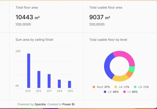 Speckleは、モデルデータをBI(ビジネスインテリジェンス)へつなぐ用途でも活用されます。Power BI連携では、モデル情報をレポート内で扱い、属性によるフィルタや色分け、更新反映などの運用を想定できます。