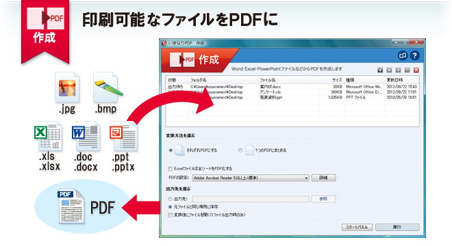 本製品は、さまざまなファイルをPDFよりもさらに軽いファイル(jet形式)に変換するソフトです。ファイルを選択して実行するだけで、カンタンに変換できます。