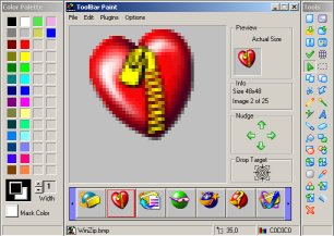 Toolbar Paint(ツールバーペイント)は自分だけのツールバーボタンをデザインしたい人のために開発されました。編集ツールをいろいろと使って、視覚的にツールバーをデザインし、最大64個のツールバービットマップを作成することができます。