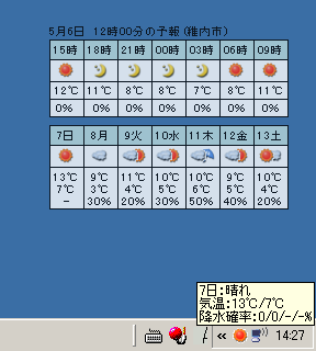 このソフトは、tenki.jp、Yahoo天気情報のホームページから天気予報を取得してデスクトップに表示するソフトです。